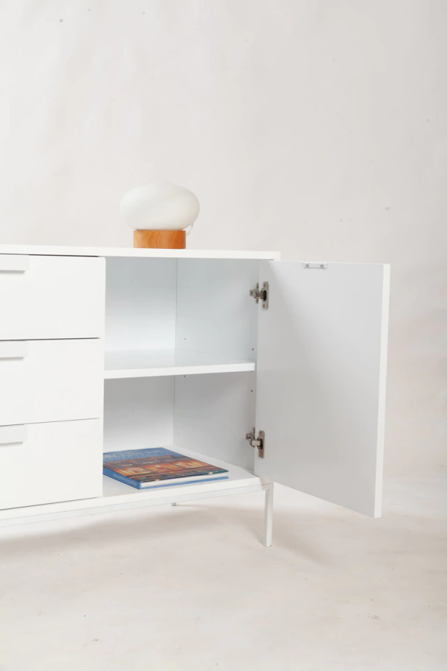 Materiales: Pata y tiradores metalicos con laca blanca.
